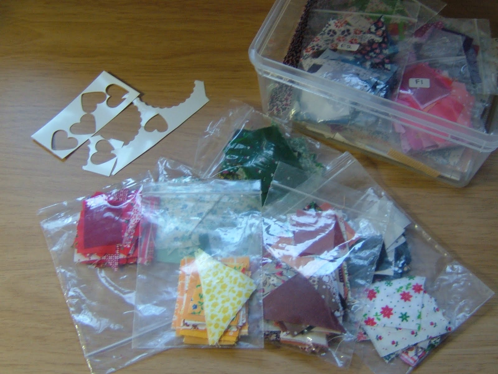 Of course I still have those swatches neatly sorted into colours and stashed away to be used one day as they were always too small to use in patchwork. Well today's the day! Out they came and I had a route around for some colours and snippets to use in a few challenges.