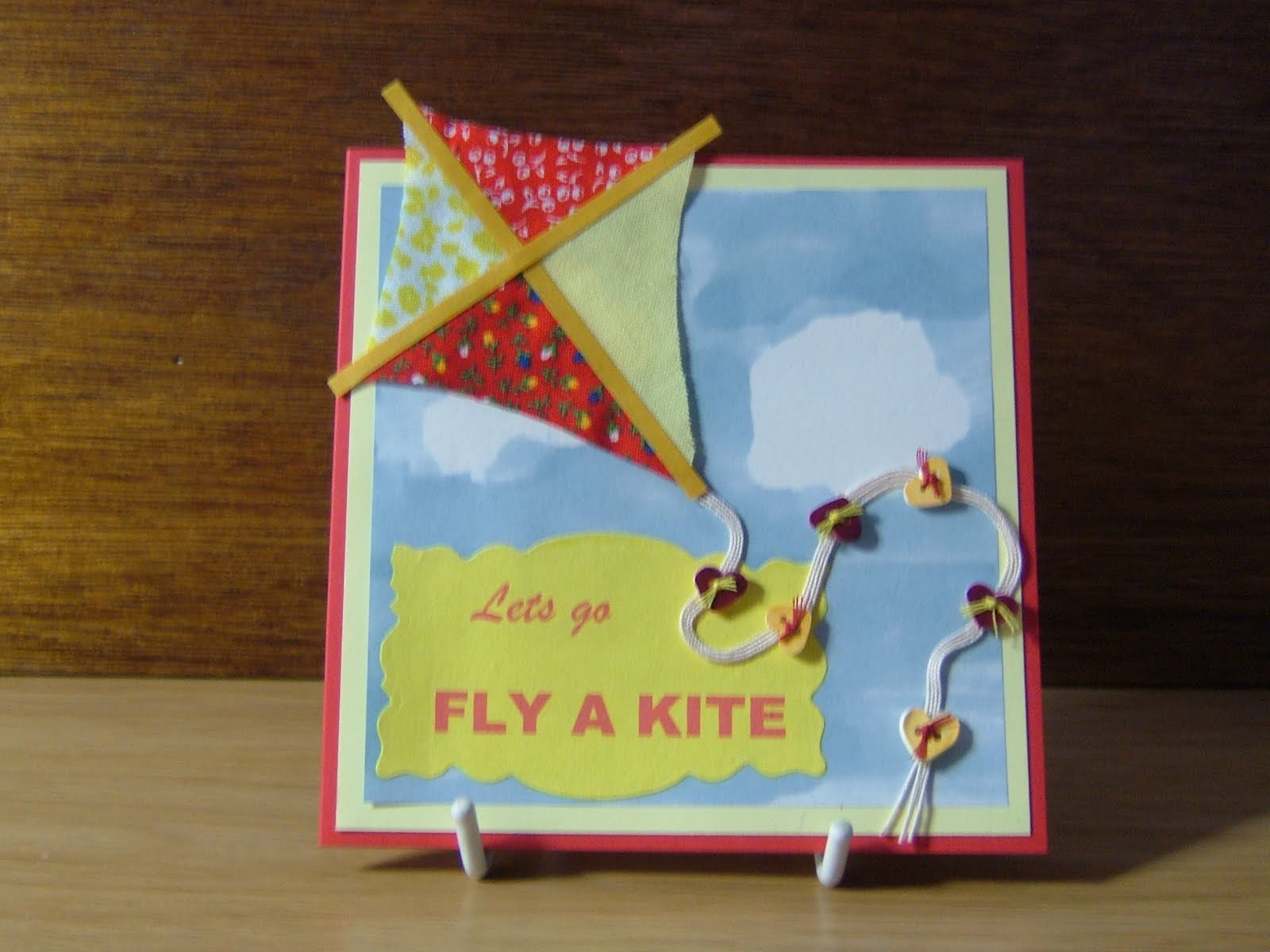 What a fun kite card! I remember flying a kite with a bunch of semi-drunk friends many years back. The kite kept crashing and getting hurt so we'd use duct tape and pieces of branches to hold it together and the silly thing kept on flying.