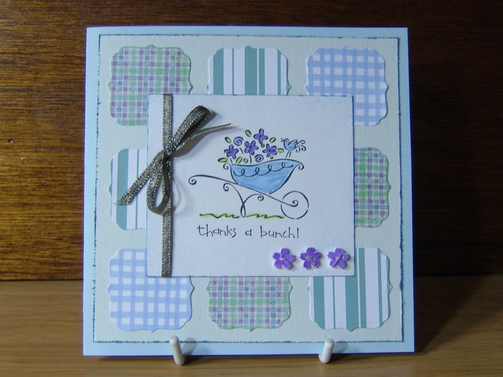 Oooer Mrs A - a really pretty card indeed. Love the way you've used the snippets and the wheel barrow is so cute.
