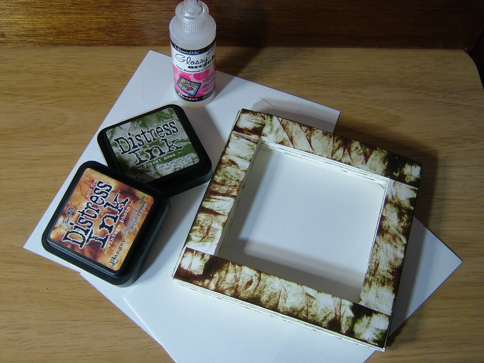 So having collected up my cardstock glue and distress inks this is the frame I made.