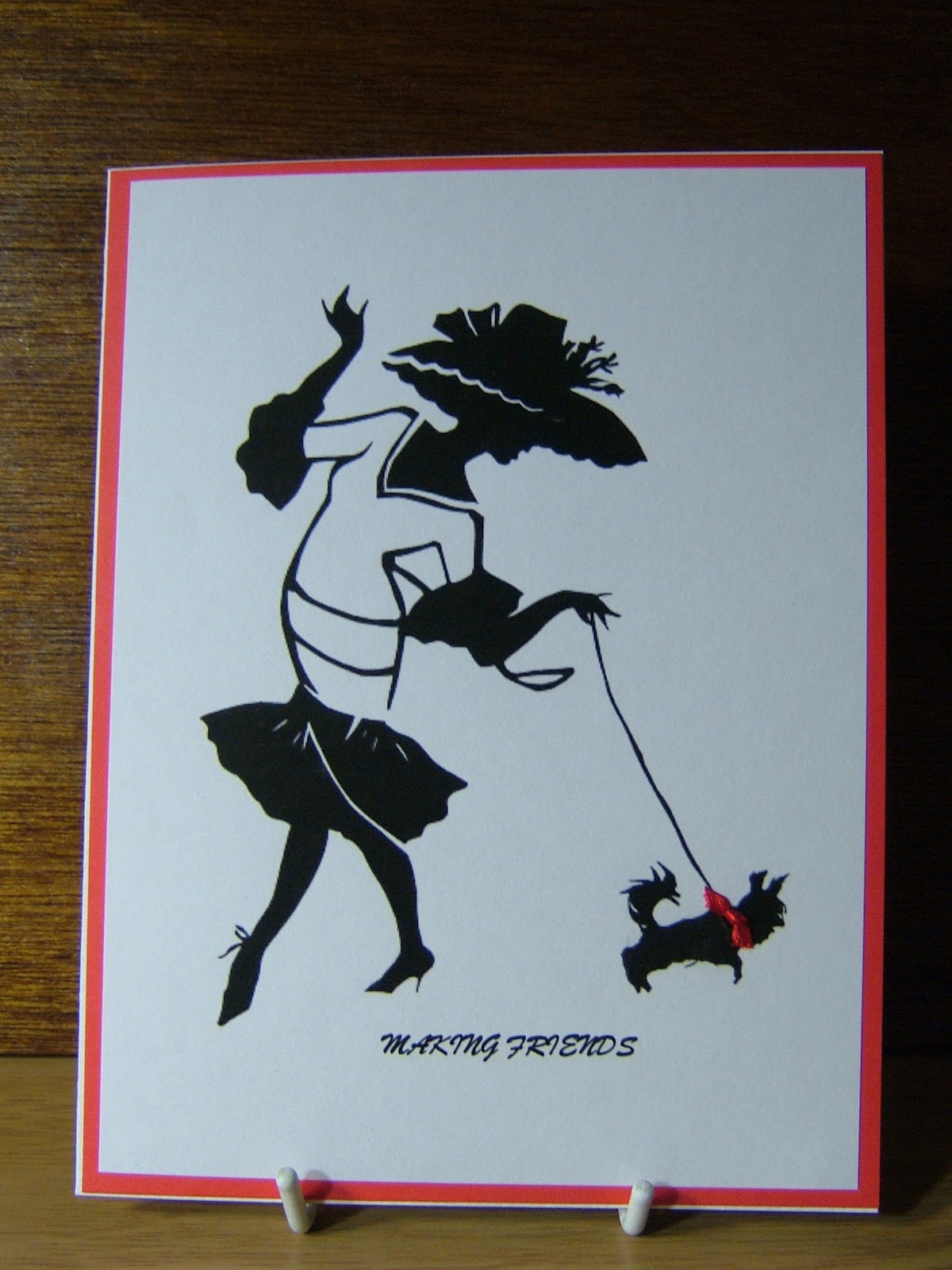 This is so stunning,with the chic lady & her dog, and set against th e brillant red...just so elegant. Oh la la. Perfectly lovely card, and TFS. Hugs
