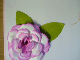 Whilst having a rummage in my stash I found this rose that I had made for 'The Wedding' which had been a reject due to being the wrong colour. However it matched this paper perfectly so I just had to use it. The flower had originally been made using the Spellbinders
