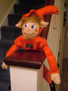 lol.......Hi Mrs A there's never a dull moment on your blog and this is an amazing and cute Elf just the cutest l have ever seen and so well made your talent really shows through l only hope he behaves himself he does look like he could get up to mischief sliding down that stair bannister is only the start of it....lol xx