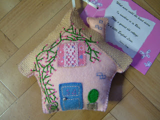 Oh wow, your little house is stunning, what a gorgeous gift to send. Those French knots must of taken you an age, they were something l never managed to achieve!