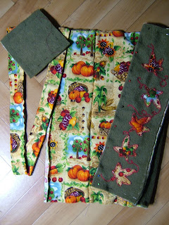 I don't generally use patterns I just make it up as I go along so there are no measurments(I just eye balled a bottle of wine for the sizing)!  I had some  sage green fuzzy fabric left over from making a project last yr and as you can cut and leave raw edges without it fraying decided this would be ideal for the outside of the cover. I also had a fat qtr of fabric which had fruits of the forest on it  along with bunches of grapes to use for the linning and decoration. Very appropriate I thought.