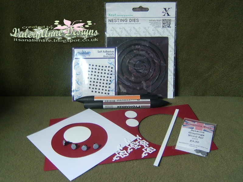 Now I do so love a challenge and I have also set myself the added challenge of coming up with 12 ideas to make a different card each time. I might even manage a Bakers Dozen so without further ado this is what I pulled from my stash to make the first card.