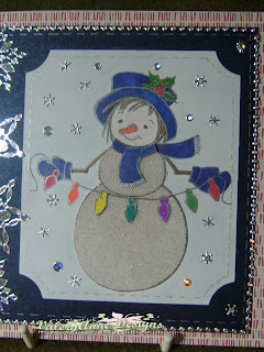 Fab, festive card Mrs A, love this jolly snow lady and the silver snowflake detail. Pretty cool too how you have layered the image :) Donna ♥ x