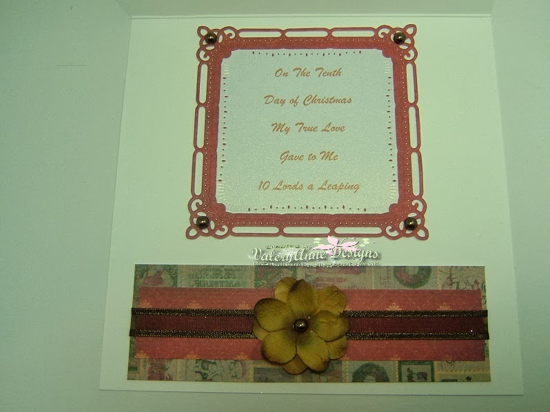 Day 9 of my 12 days of Christmas challenge. I had a sort through the different folds you can make for a card and came up with a Gate Fold for this card. I didn't use a tutorial just  folded a blank card to the correct shape by laying the blank down flat and bringing the outside edges into the middle and creasing with  a bone folder.