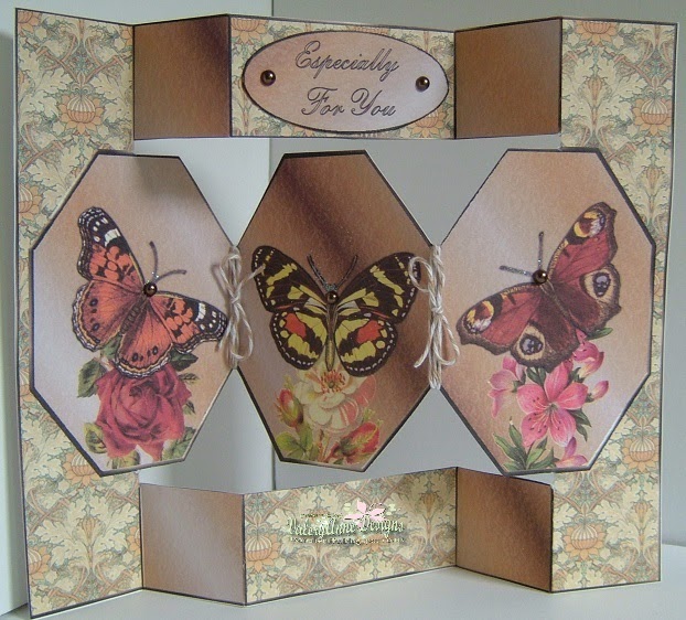 "WOW" Mrs A gosh you have been busy with all of your wonderful creations and so lovely to see your fancy fold card the butterflies on the 1st card are stunning as is the image 2nd card equally gorgeous butterflies the cutting must of been time keeping 3rd card the butterflies again and the papers are stunning truly another great challenge to share take care xx