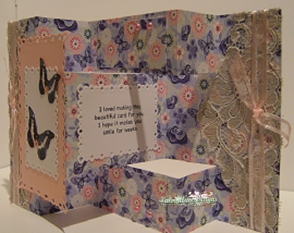 Very nice. I love the fold and lace. Your butterflies look great! Thanks for joining us at Love to Scrap.