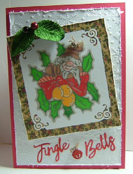 Finally my last card features a digi called Sleepy Holiday Fred Gnome by Lacy Sunshine. I know I'm really chancing it letting a gnome near my blog but hopefully that naughty/delightful/pesky Elf will stay away this year!!