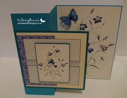 Second card is called a Fold out card. Here I have used complementing  images from two  decoupage popper pads  by Creative Crafting World that I won some time ago in blogland from the lovely Sue T.