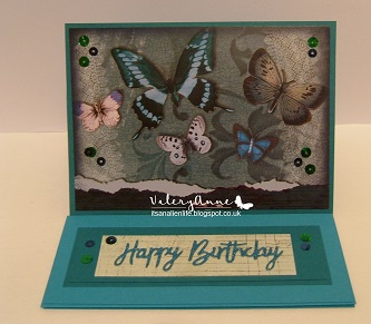 #93 Butterflies + X is for Xtra fold and or the colour Peacock  Blue/ Green.