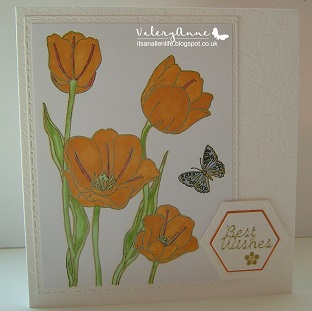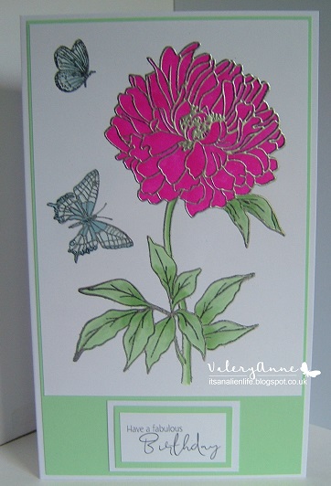 Two very beautiful floral images Valery, I love your colouring and design. Gorgeous anniversary card too, love the hearts, wonderful selection of cards, Kate x