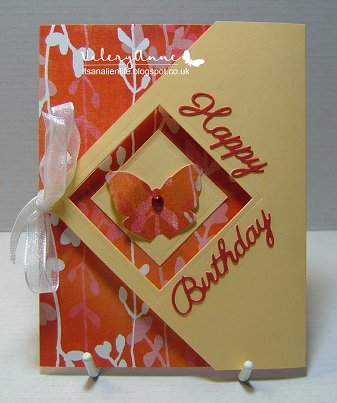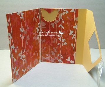 This is a fabulous card Mrs A ... love the papers you have used and how the butterfly on the outside has been cut from the inside! Will have a go at this fold later!!