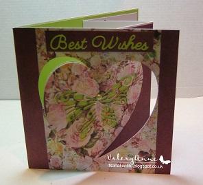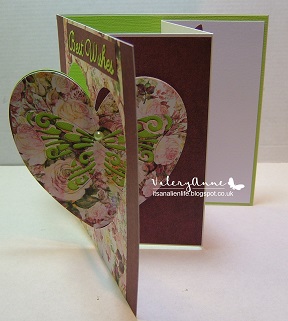 Here is the card closed. I have used design papers from The works, Heart shape die cut From John Next Door, Butterfly die from Elizabeth Craft Designs and a Britannia word die.